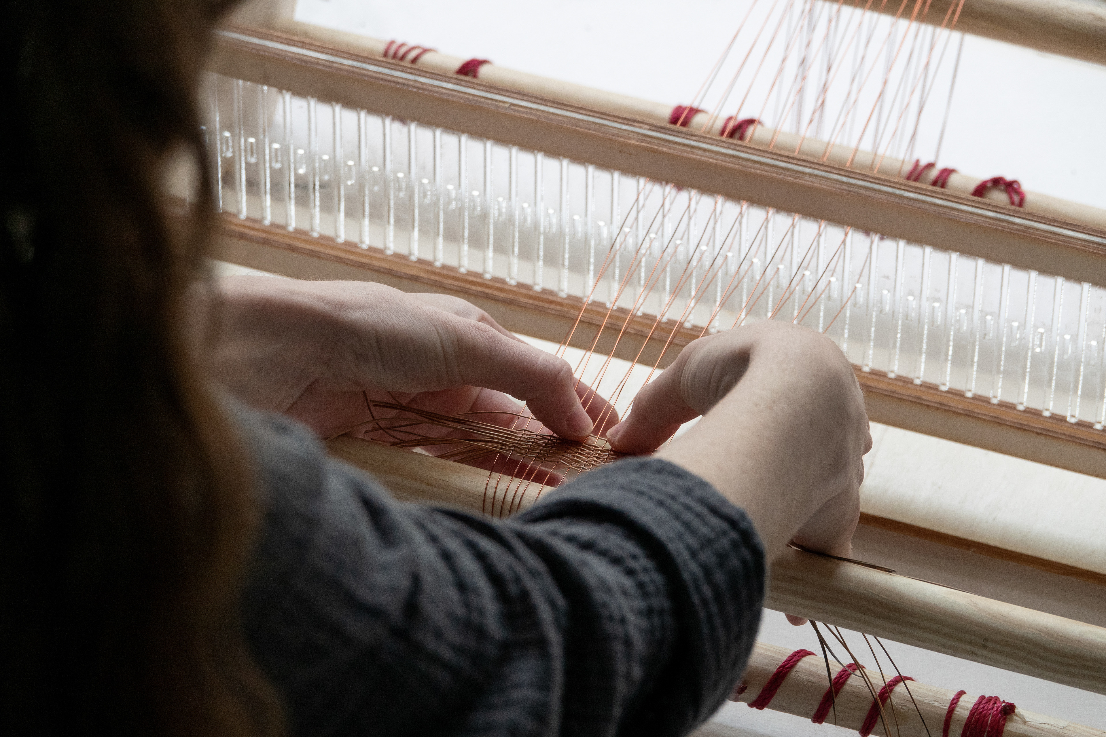 CoPine is a novel weaving technique I developed combining copper and pine needles, creating a constructive yet soft textile. The CoPine mask was designed as a conceptual covid mask. The pine and copper materials carry antiviral qualities.